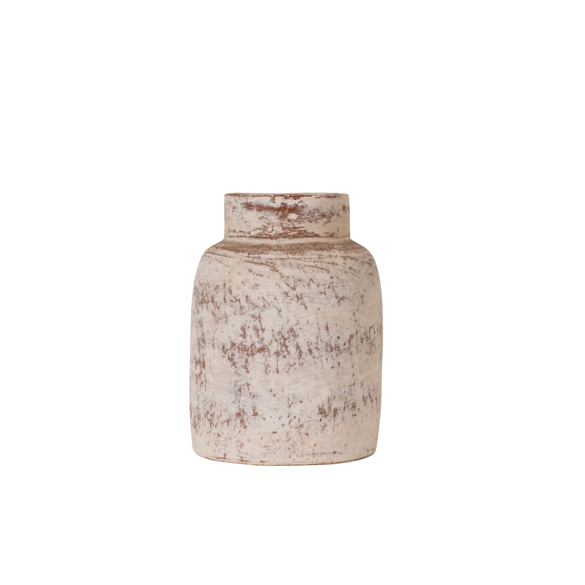 Rustic and refined, the Verona Terracotta Jar embodies artisanal craftsmanship and timeless character. Handcrafted by artisans in Indonesia, this vessel features a textured surface with a softly distressed whitewash finish, offering a natural and timeworn aesthetic.